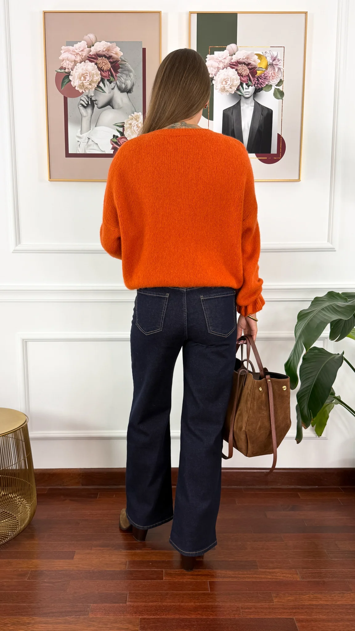Model sprawdzi się na sylwetkę od S do XL. Alpakowy kardigan. Rękawki zakończone falbanką. Sweter jest niezwykle przyjemny w dotyku.