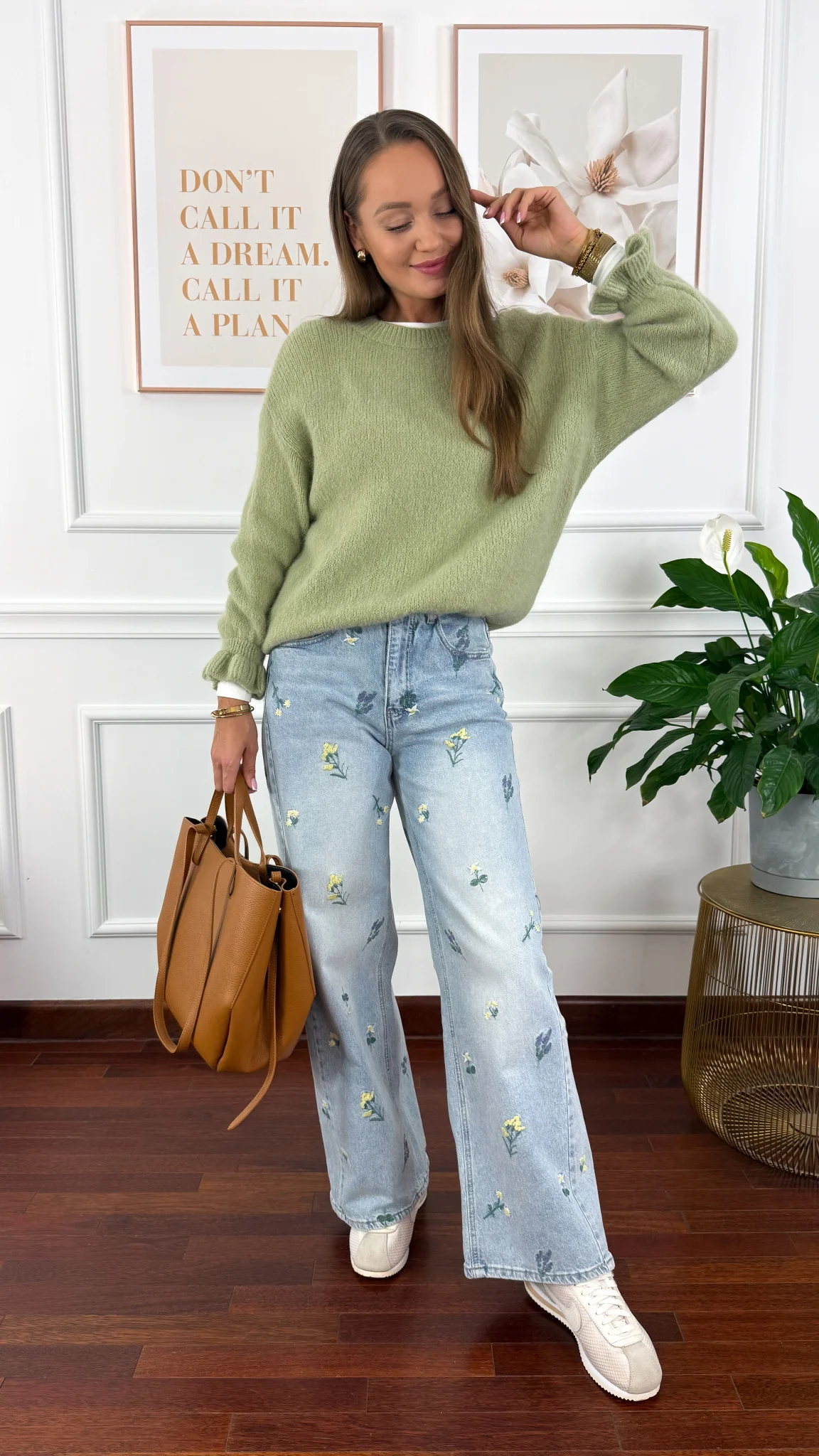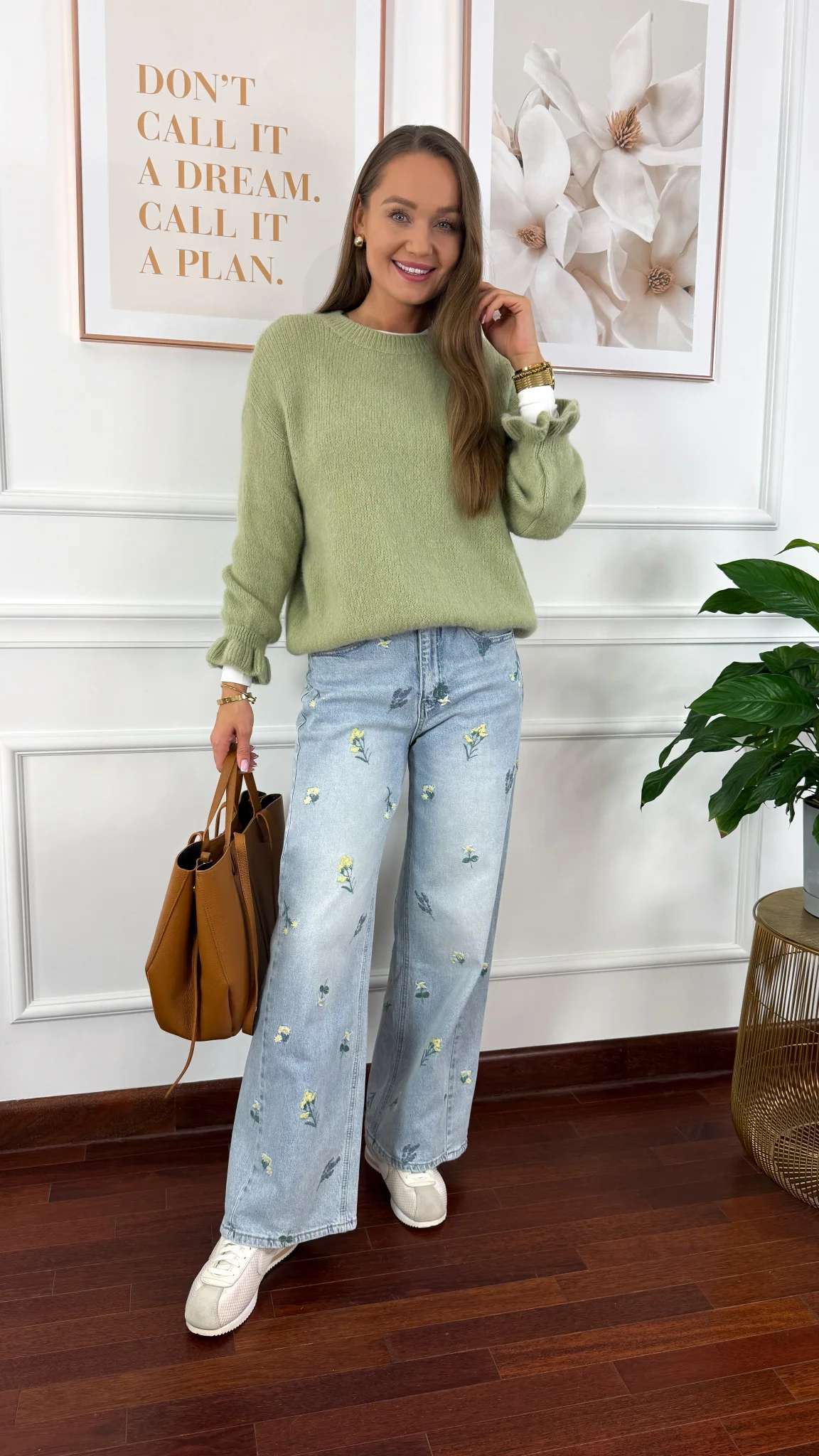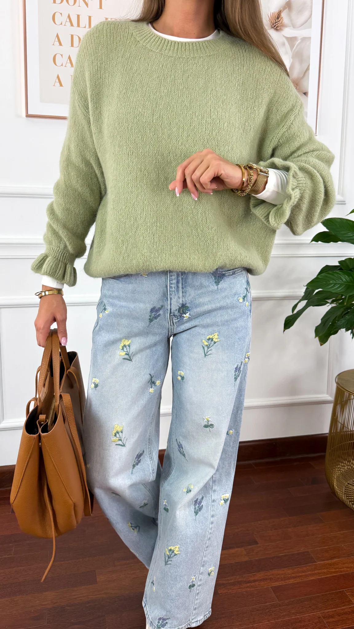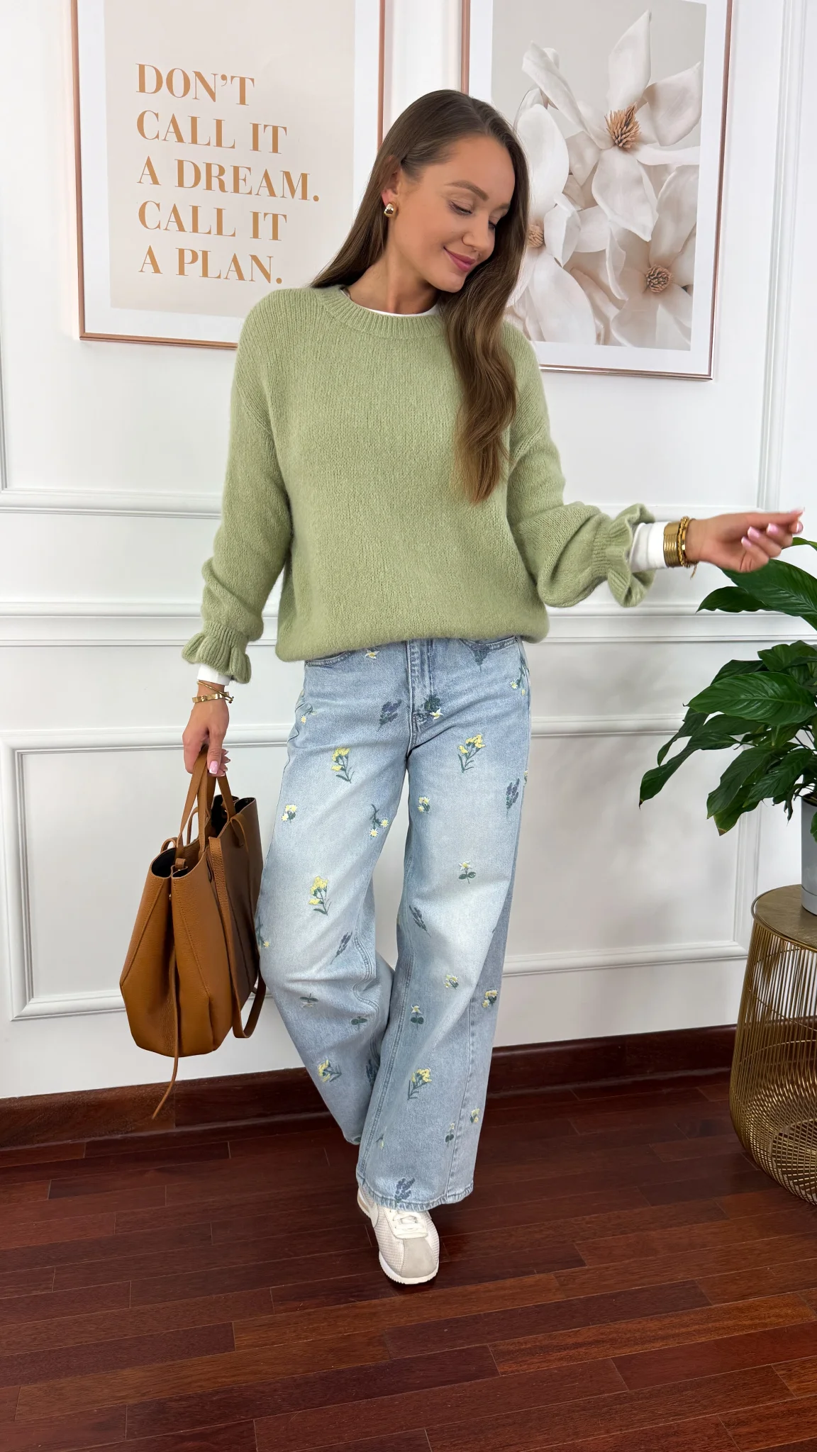 Model sprawdzi się na sylwetkę od S do XL. Alpakowy sweter. Rękawki zakończone falbanką. Sweter jest przyjemny w dotyku, niewyczuwalny na skórze.