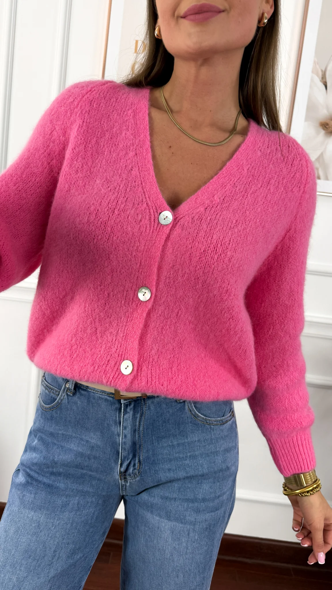 Model sprawdzi się na sylwetkę od S do L. Alpakowy kardigan. Rękawki zakończone ściągaczem. Sweter jest przyjemny w dotyku, niewyczuwalny na skórze.