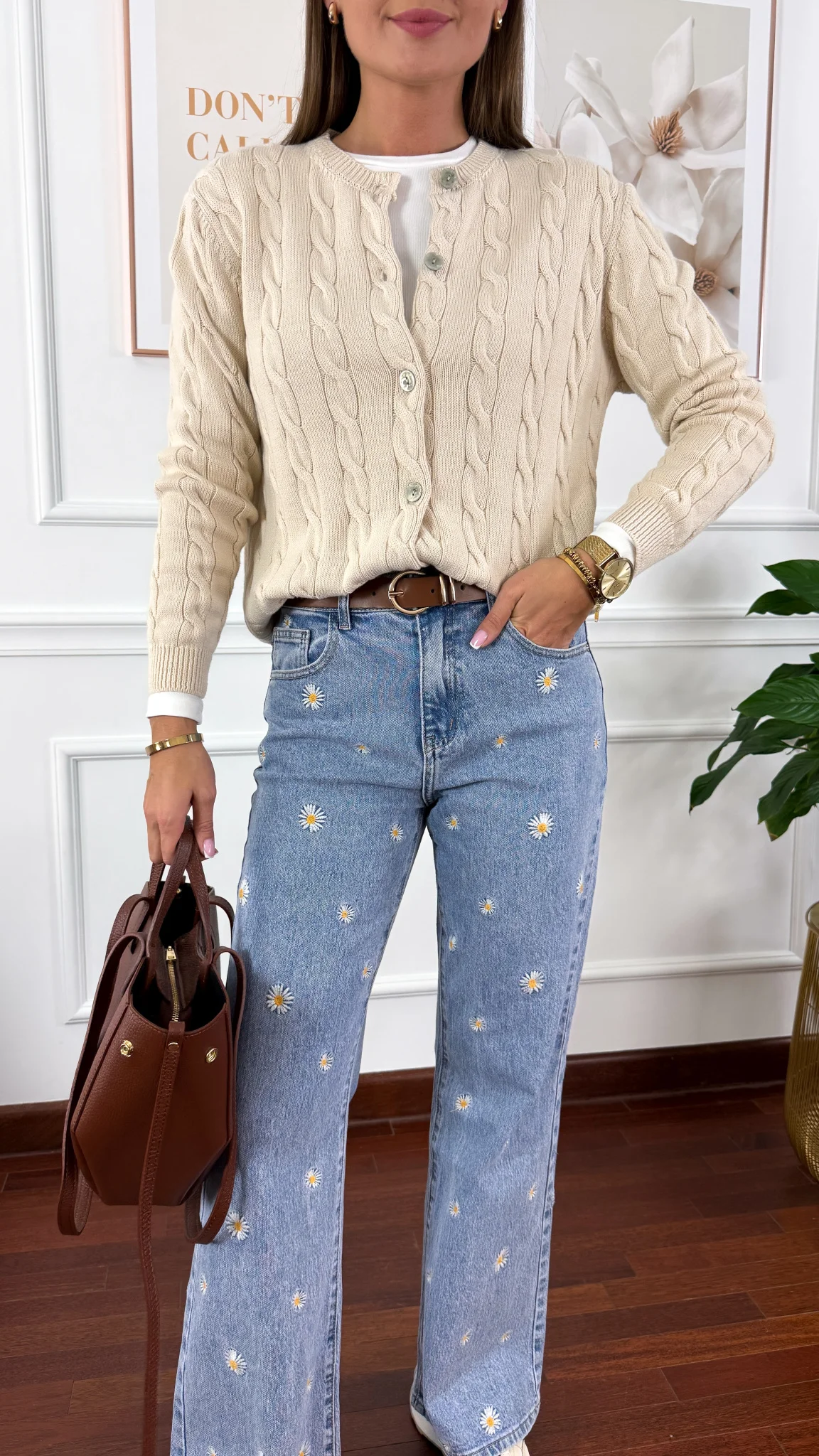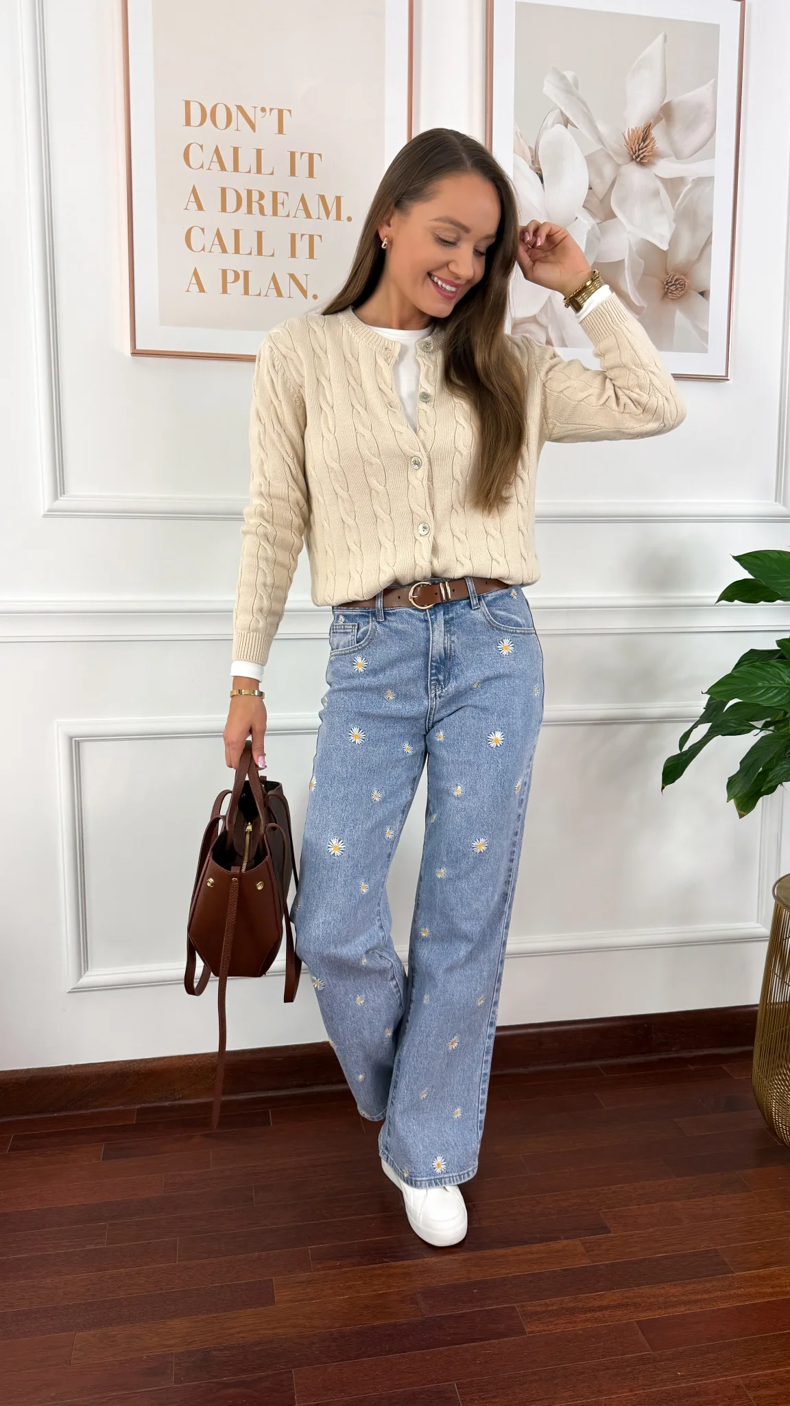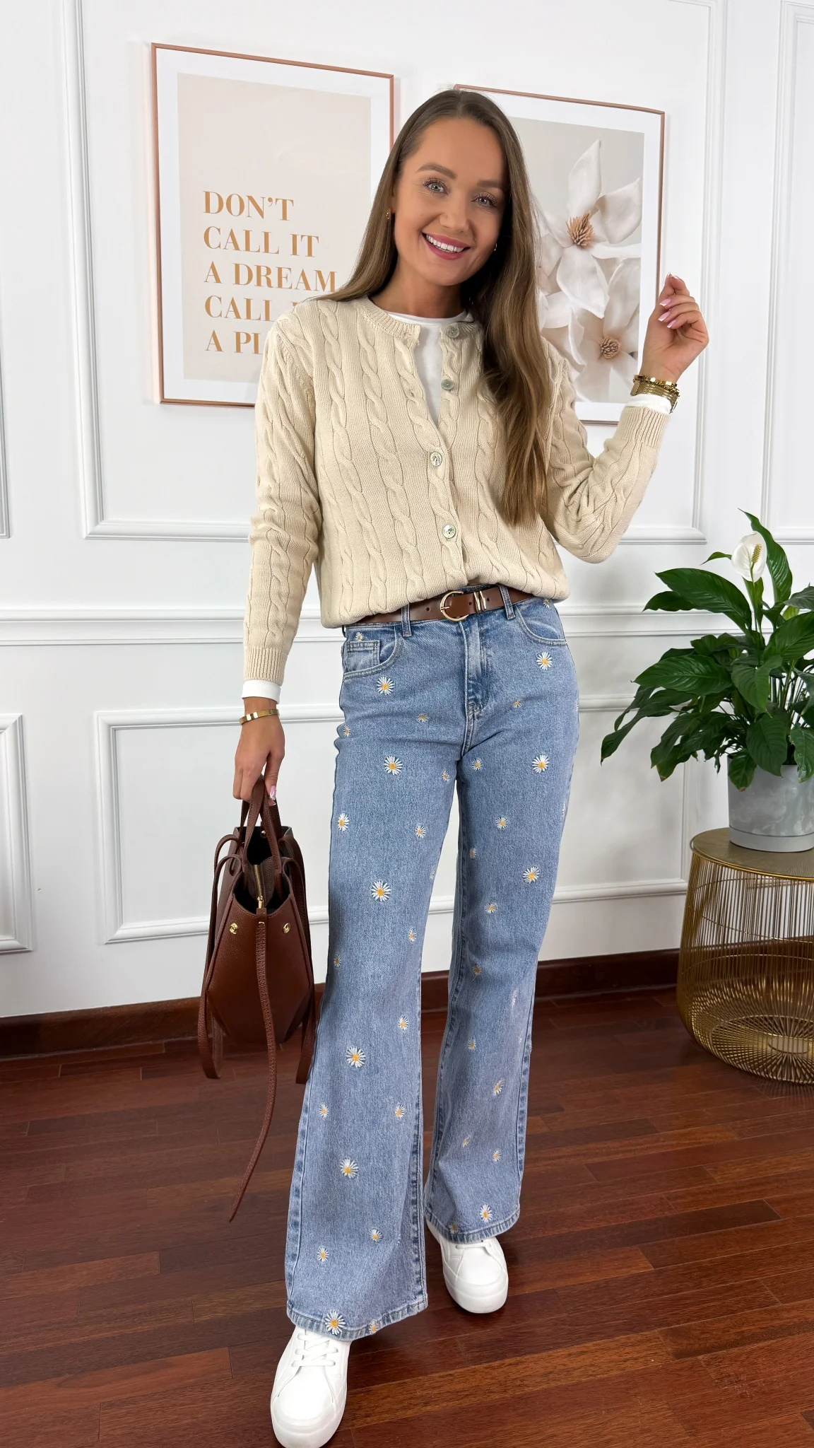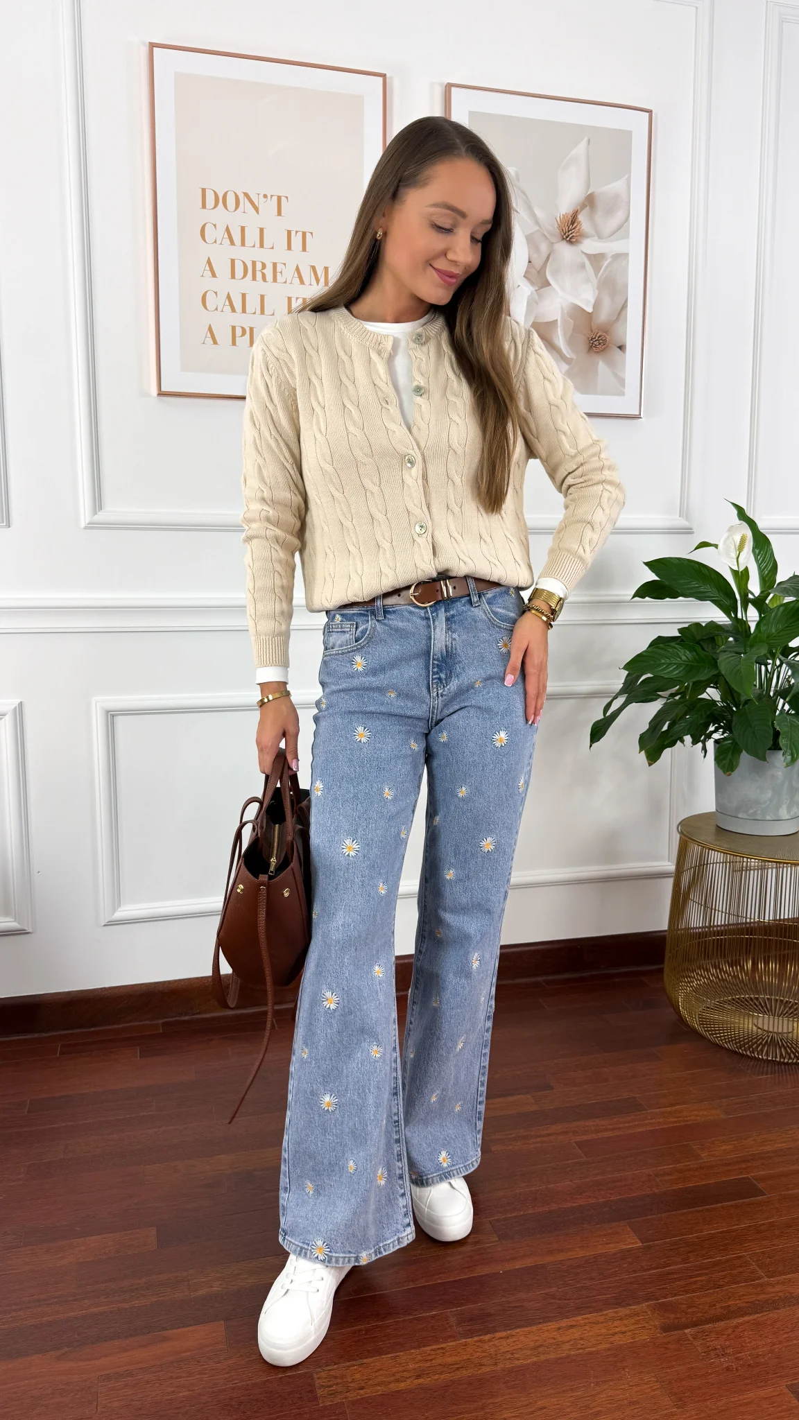 Model sprawdzi się na sylwetkę w rozmiarze od S do L. Kardigan zapinany na guziki z okrągłym dekoltem. Rękawy oraz dół zakończone ściągaczem. Sweter jest przyjemny w dotyku, niewyczuwalny na skórze.
