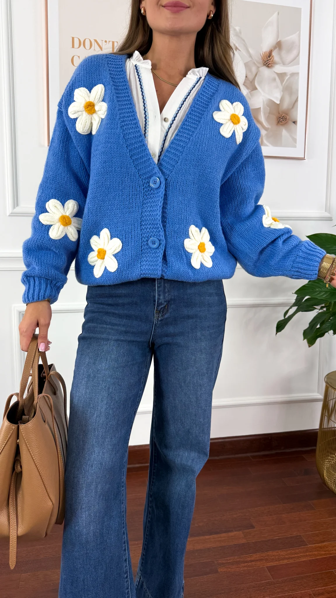 Sweter 3d Saria stokrotki niebieski