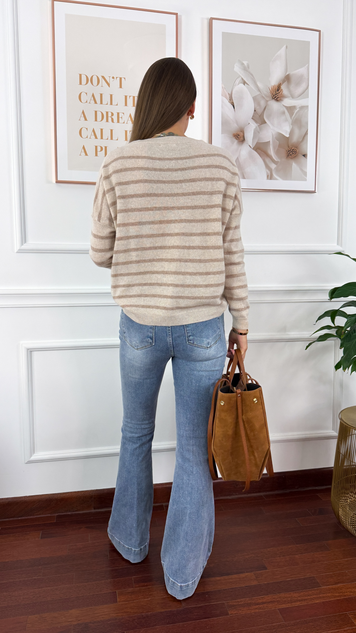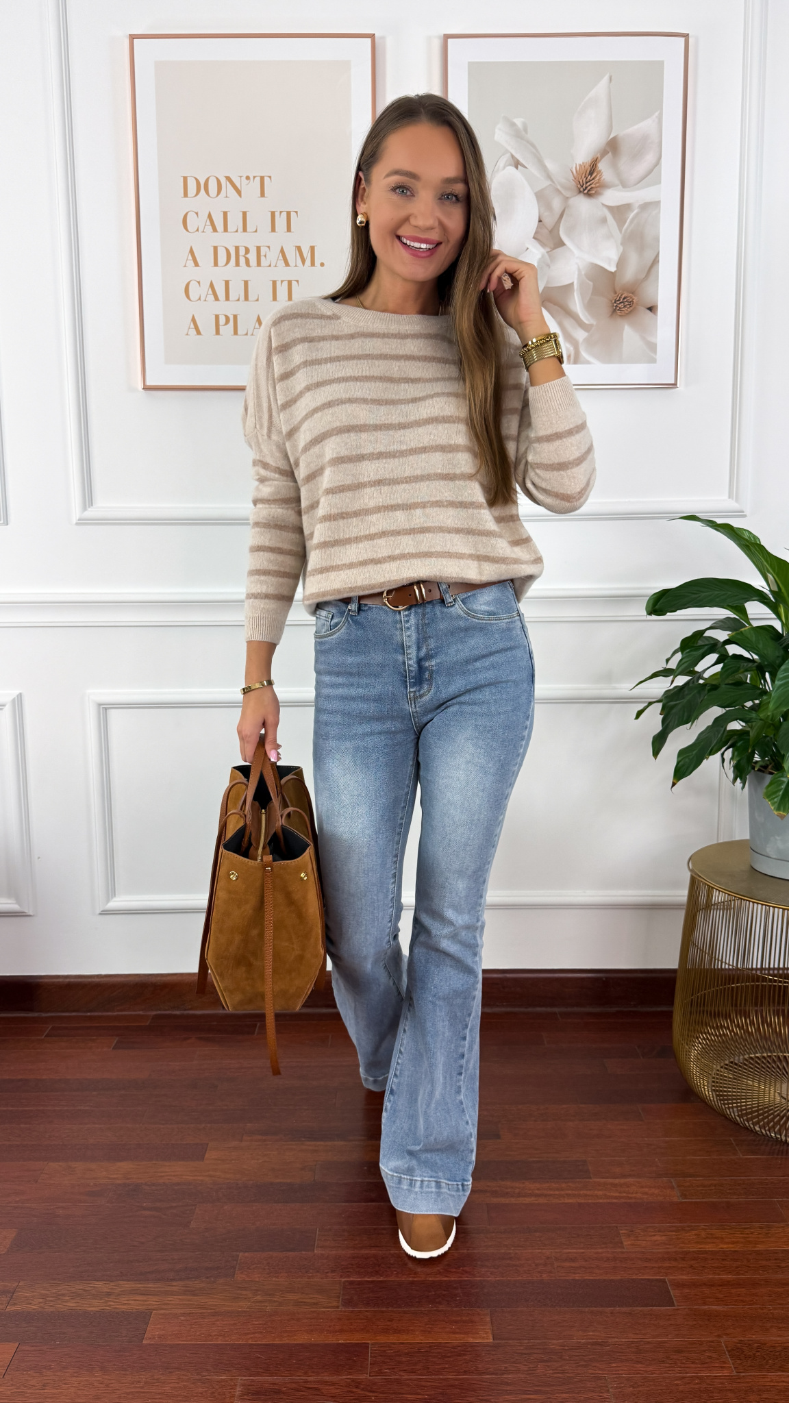 Model sprawdzi się na sylwetkę od S do XL. Wełniany sweter na długi rękaw z okrągłym dekoltem. Rękawy zakończone ściągaczem. Materiał jest bardzo miękki i niewyczuwalny na skórze.
