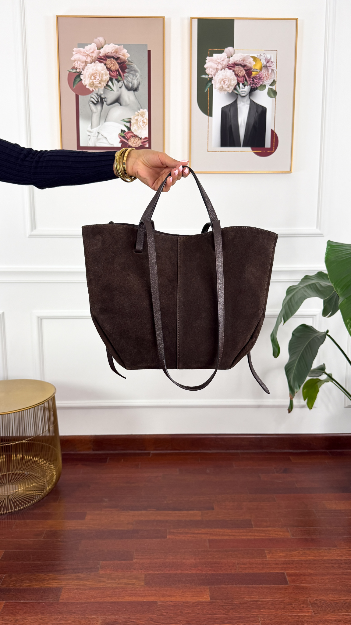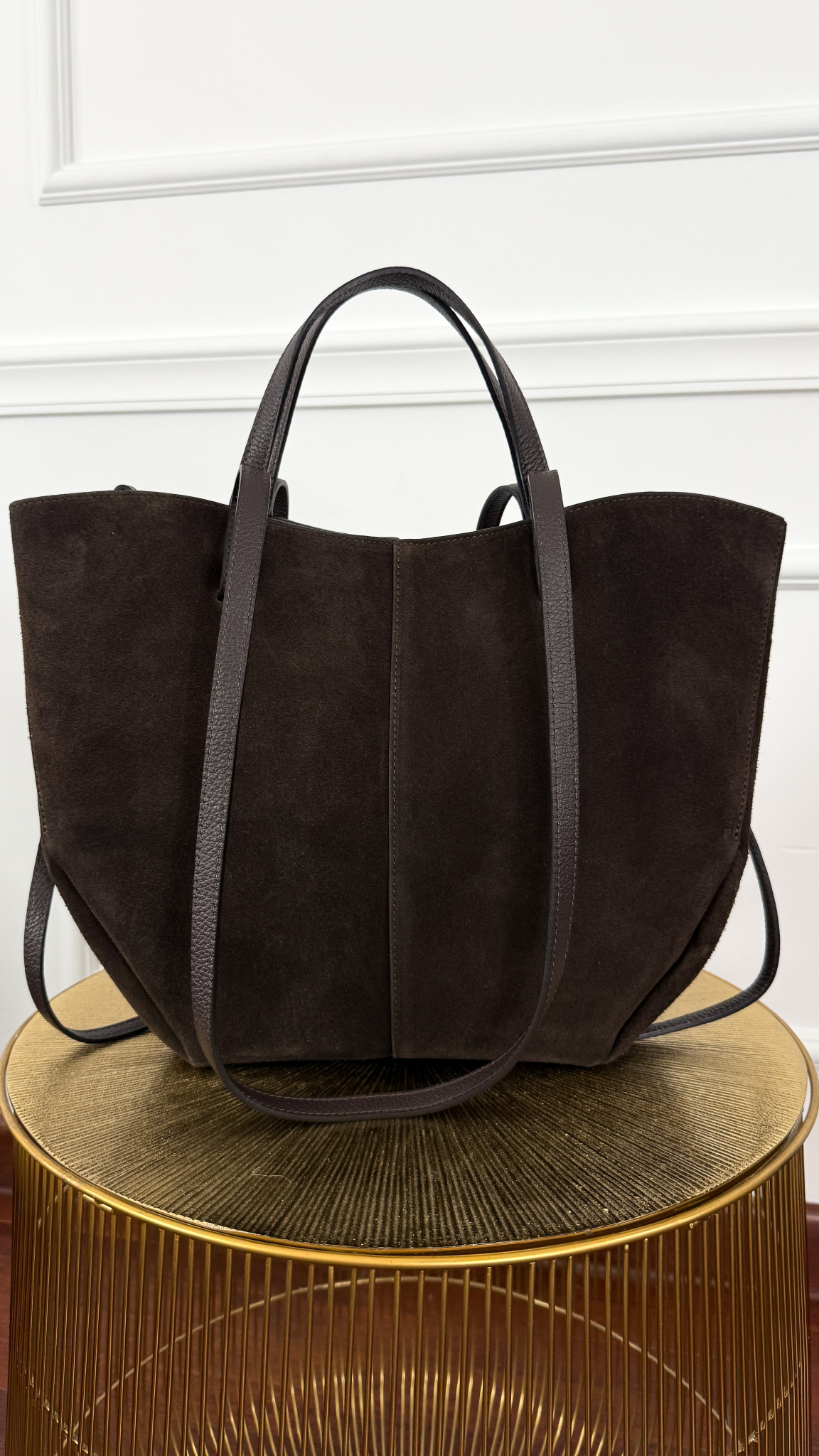 Zamszowa skórzana torebka Fino czekoladowa