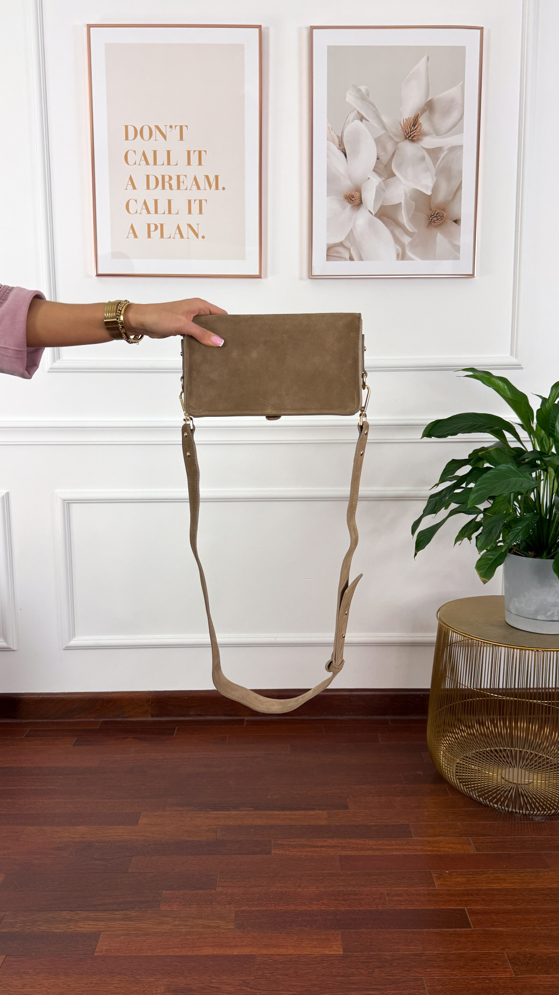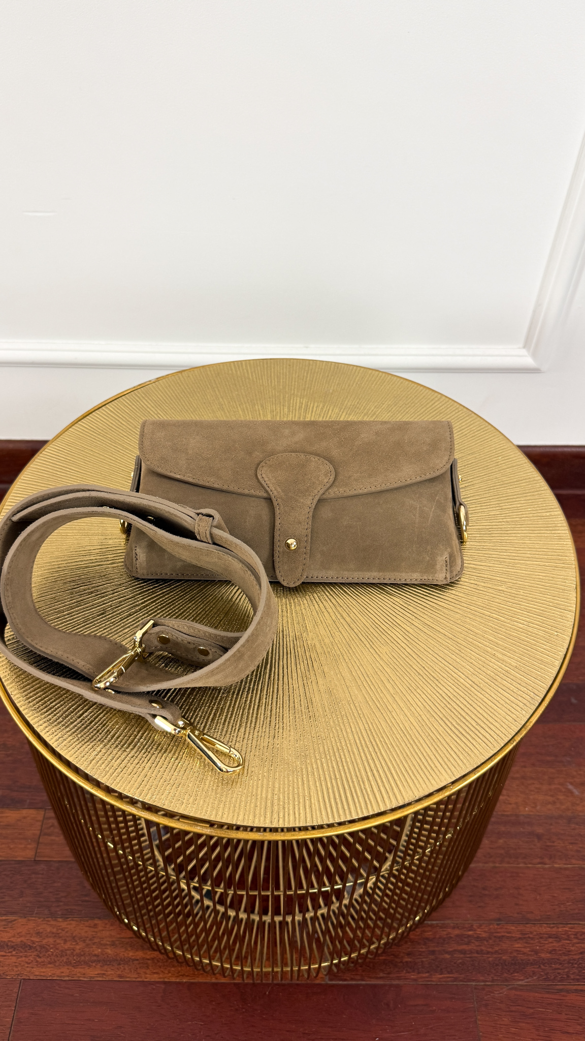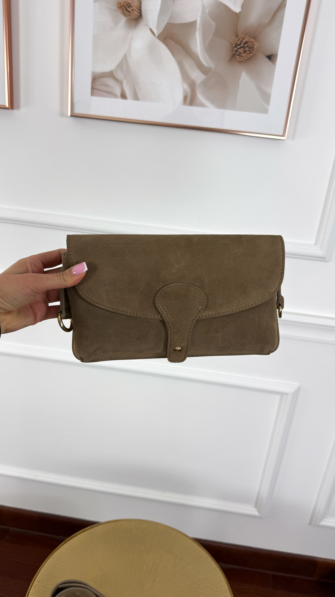 Zamszowa skórzana torebka Mia taupe